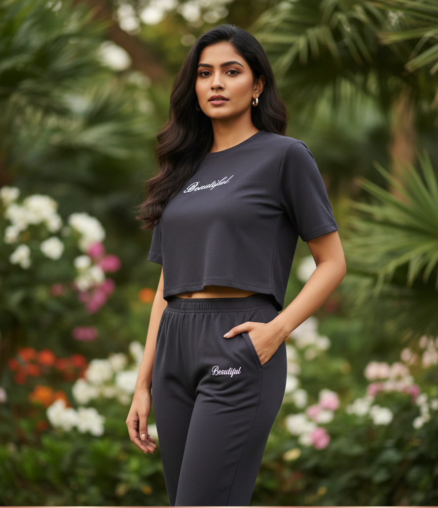Made from high-quality, breathable, and stretchable fabric, this co-ord set ensures all-day comfort while offering a sleek and flattering fit. The coordinated top and bottom create a balanced, stylish silhouette suitable for both active and casual lifestyles.